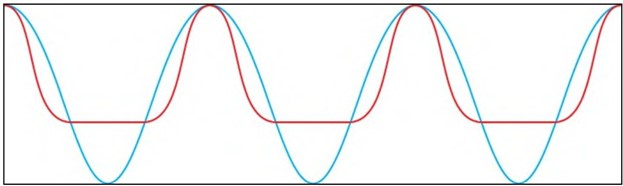 Carbon dioxide (blue) cell profiles engrave a conical, deepcell. Multi beam fiber optic engravings (red) havesteeper walls and flatter cell floors with the same volume. Both qualities promote ink transfer.