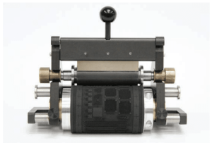 For flexographic models, printheads are available with repeat sizes of 2.356 in. and 6.67 in. to test a variety of applications. Plateheads are available as in-the-round engraved EPDM rubber or a plate cylinder for mounting photopolymer or EPDM plates in 0.067-in. and 0.045-in. thicknesses (see Figure 3). Anilox rolls are easily changed to alter ink deposition and test a variety of ink film thicknesses.